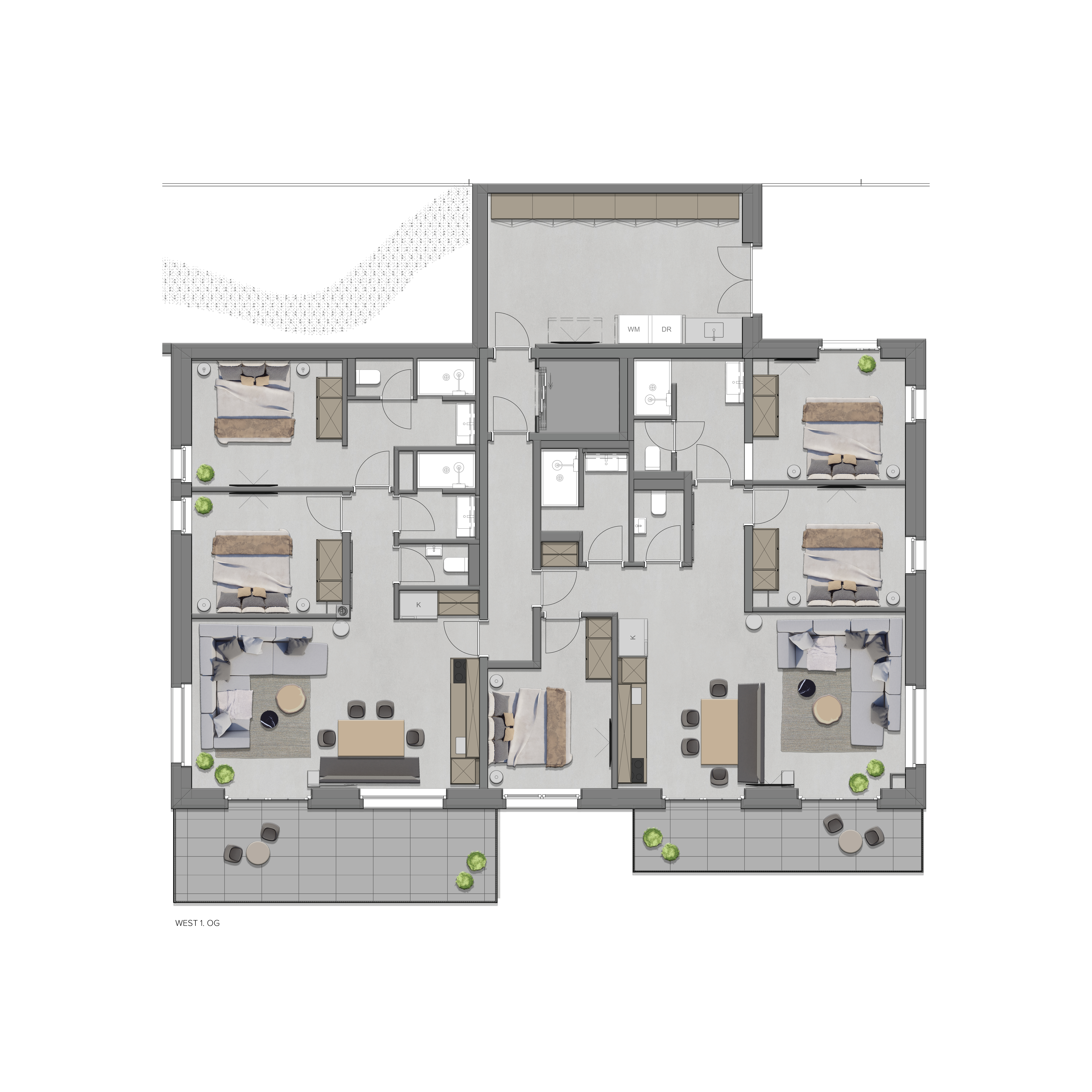 Die insgesamt 10 Apartments mit einer Nutzfläche zw. 45m² und 160m², sind am Fuße des Wilden Kaiser in exklusiver Lage, nur ein paar Gehminuten vom Ortskern Going am Wilden Kaiser entfernt. Von den Apartments hat man einen exklusiven Rundblick über die Kitzbüheler Alpen, vom Kitzbüheler Horn, Hartkaiser bis hin zum Wilden Kaiser.