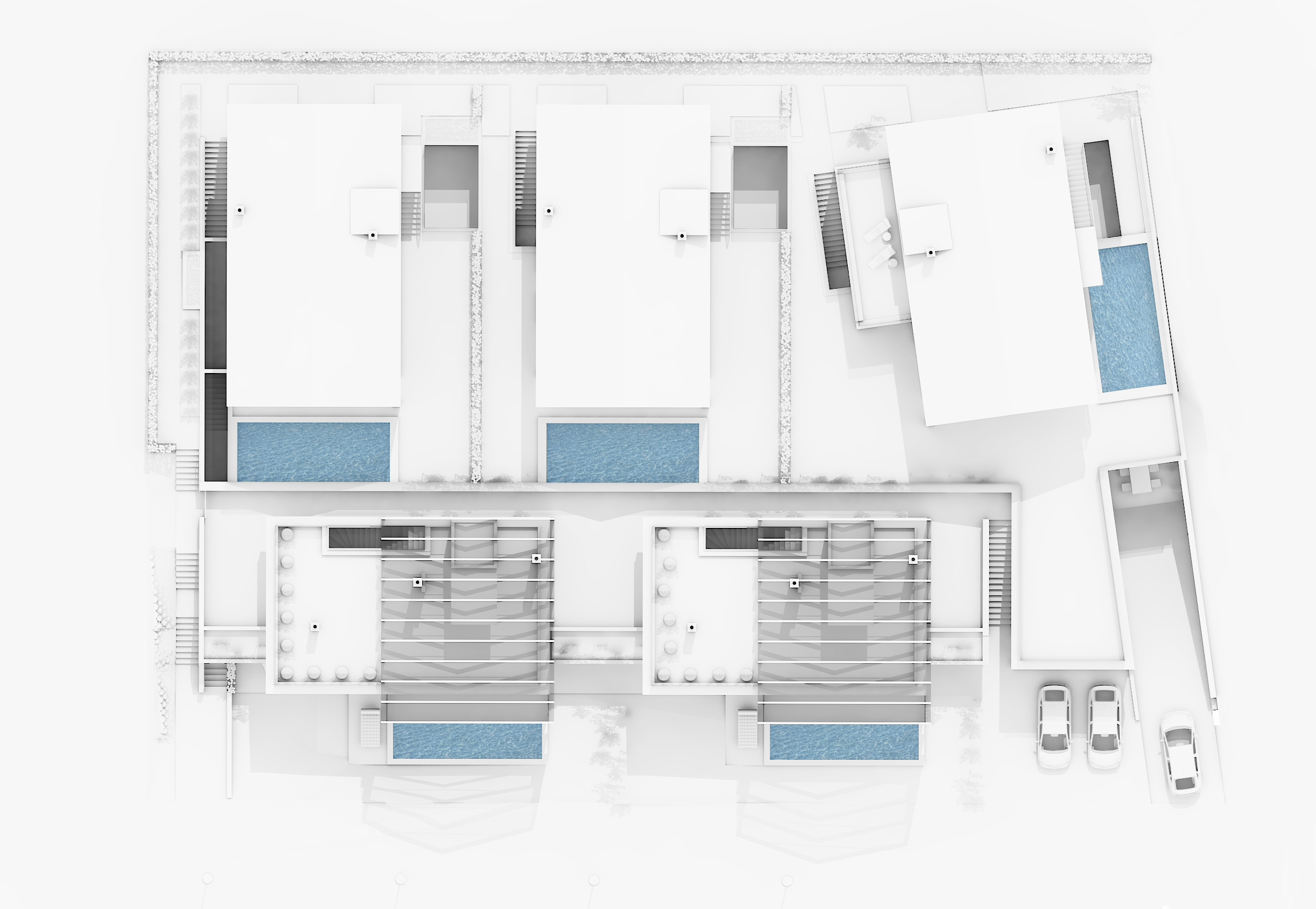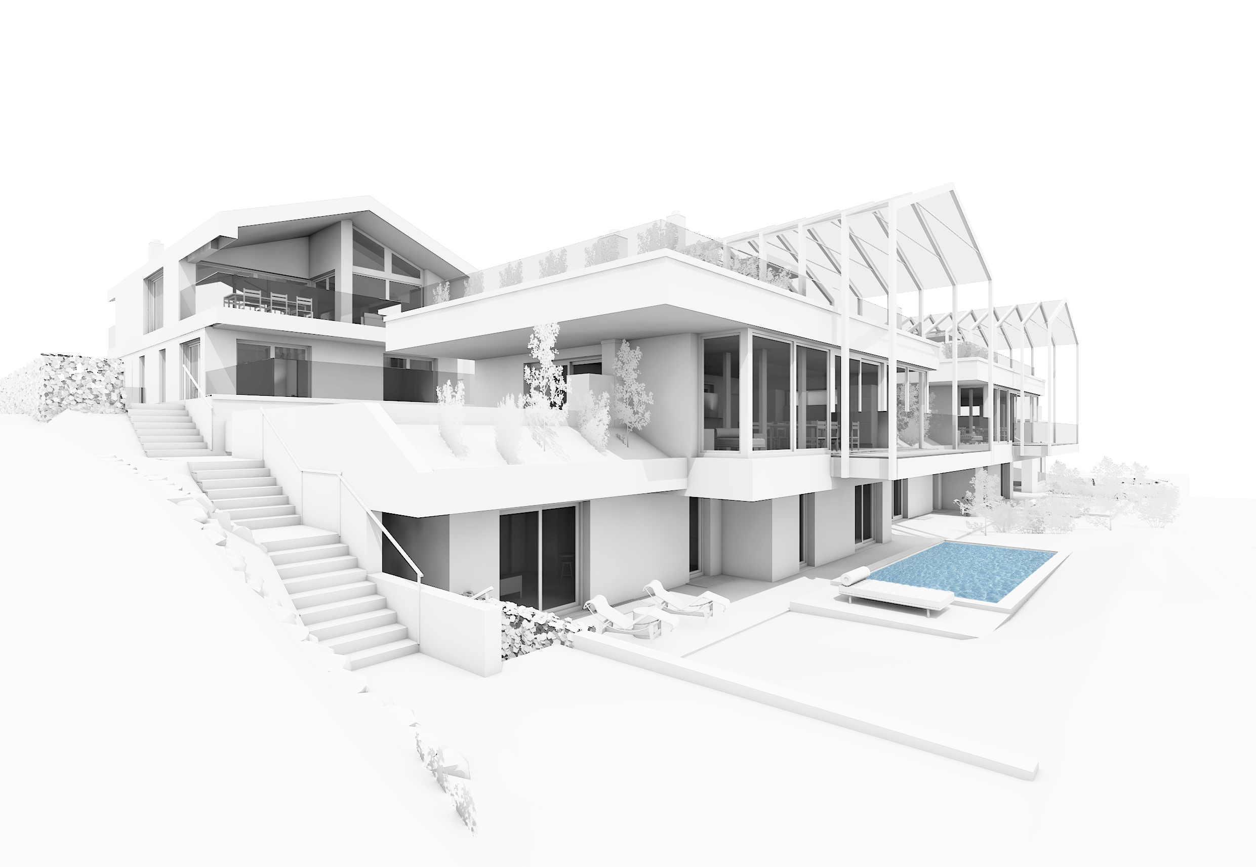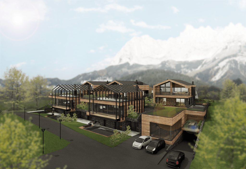 Auf dem Südhang entsteht ein Ensemble aus fünf hochwertigen Wohnhäusern mit traumhaften Ausblick auf das Kaiser Gebirge sowie das Kitzbüheler Horn. Jedes der Einheiten besitzt neben drei Schlafzimmern einen eigenen Wellnessbereich sowie einen Aussenpool. Eine gemeinsame Tiefgarage bietet Platz für drei Fahrzeuge pro Einheit. Des Weiteren existiert ein Multifunktionsraum zur gemeinschaftlichen Verwendung. Während die drei nördlichen Gebäude eine moderne Interpretation des klassischen Tiroler-Hauses darstellen, wurden die zwei südlichen Einheiten mit Flachdächern ausgeführt. Eine filigran wirkende Stahlkonstruktion in Form eines Satteldachs erlaubt die Benützung der Dachterrasse bei allen Witterungsverhältnissen.