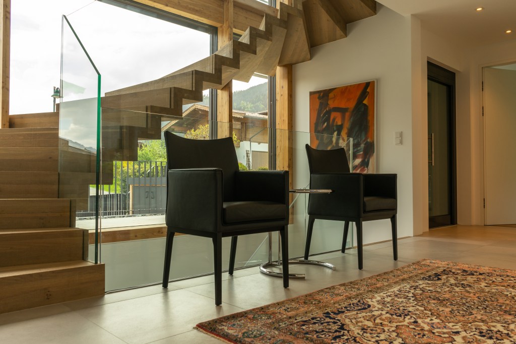 Abbruch des bestehenden Wohnhauses und Neubau eines Einfamilienwohnhauses. Im Untergeschoss befinden sich eine Tiefgarage mit 4 Stellplätzen, diverse Technikräume sowie ein großzügiger Wellnessbereich. Die privaten Schlafzimmer mit dazugehörigen Sanitärbereichen befinden sich im Erdgeschoss. Das Obergeschoss beinhaltet den großzügigen Wohn- und Essbereich mit atemberaubenden Ausblick in die umliegende Bergwelt.